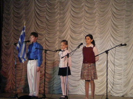 Первым выступил ученик 9 "Б" класса Соибназаров Дмитрий со стихотворением Александра Сергеевича Пушкина, которое посвящено Греции.