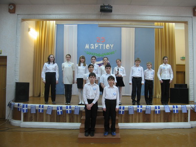 В праздничной программе приняли участие учащиеся 5-10 классов. Прозвучали песни и стихотворения, посвященные Дню Независимости Греции.